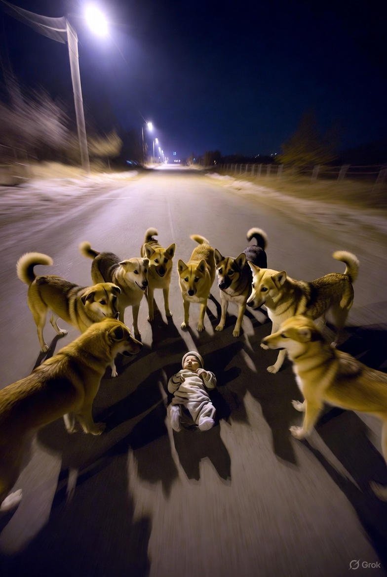 रात भर बच्चे के रोने की आवाज सुनकर पांच-सात आवारा कुत्ते वहां पहुंचे। उन्होंने बच्चे को चारों तरफ से घेर लिया। गोला बनाकर बैठ गए। कोई जंगली जानवर, कोई राहगीर – किसी को भी पास नहीं भटकने दिया। ठंड से बचाने के लिए अपने शरीरों की गर्मी उस तक पहुंचाते रहे।