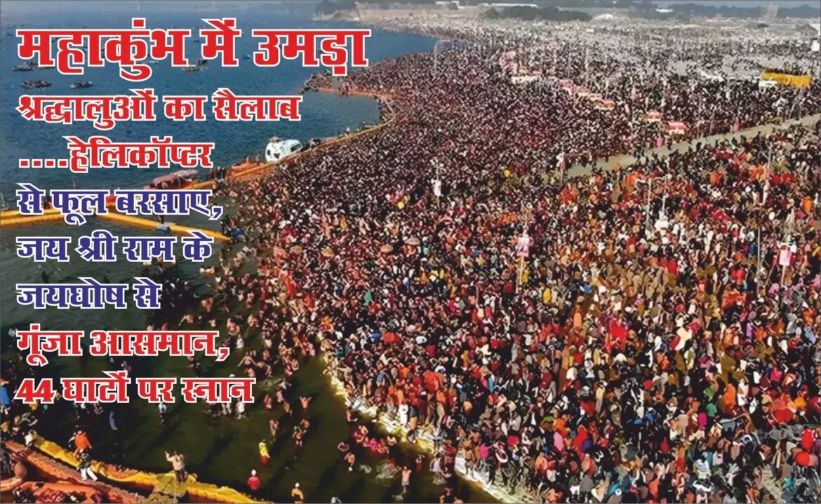 प्रयागराज : भव्य महाकुंभ 2025 आस्था, भक्ति और आध्यात्मिक एकता के जबरदस्त प्रदर्शन के साथ सोमवार को शुरू हुआ है। जिसने आज 144 वर्षों में एक बार देखी गई आध्यात्मिक भव्यता की याद ताजा कर दी। यहां देश और दुनिया भर से भक्तों का एक समूह न केवल जप, ध्यान और आध्यात्मिक तृप्ति के लिए एकत्र हुआ, बल्कि महाकुंभ की बेजोड़ सांस्कृतिक विरासत का अनुभव करने के लिए भी एकत्र हुआ। पौष पूर्णिमा पर सोमवार को पहला स्नान हुआ। दोपहर 4 बजे तक 44 घाटों पर डेढ़ करोड़ श्रद्धालु डुबकी लगा चुके हैं। भक्तों पर हेलिकॉटर से 20 क्विंटल फूलों की वर्षा की गई। महाकुंभ 144 साल में दुर्लभ खगोलीय संयोग में हो रहा है।