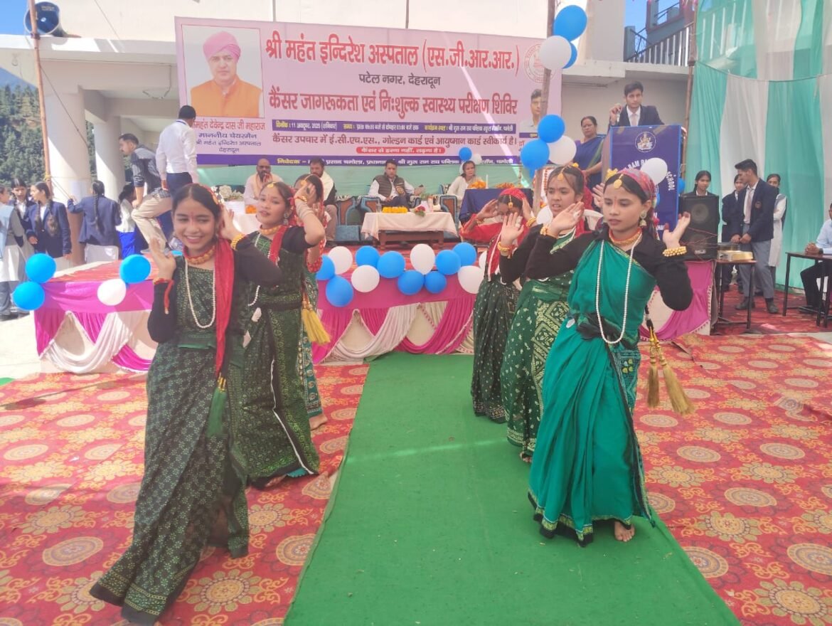 देहरादून। श्री महंत इन्दिरेश अस्पताल, देहरादून के सौजन्य से श्री गुरु राम राय पब्लिक स्कूल, गैरसैंण में शनिवार, 11 अक्टूबर 2025 को कैंसर जागरूकता एवं निःशुल्क स्वास्थ्य परीक्षण शिविर का सफल आयोजन किया गया। इस अवसर पर 3002 से अधिक मरीजों ने शिविर का लाभ उठाया। शिविर में अस्पताल के विशेषज्ञ चिकित्सकों ने स्वास्थ्य परामर्श दिया तथा रोगियों को निःशुल्क दवाइयाँ वितरित की गईं।