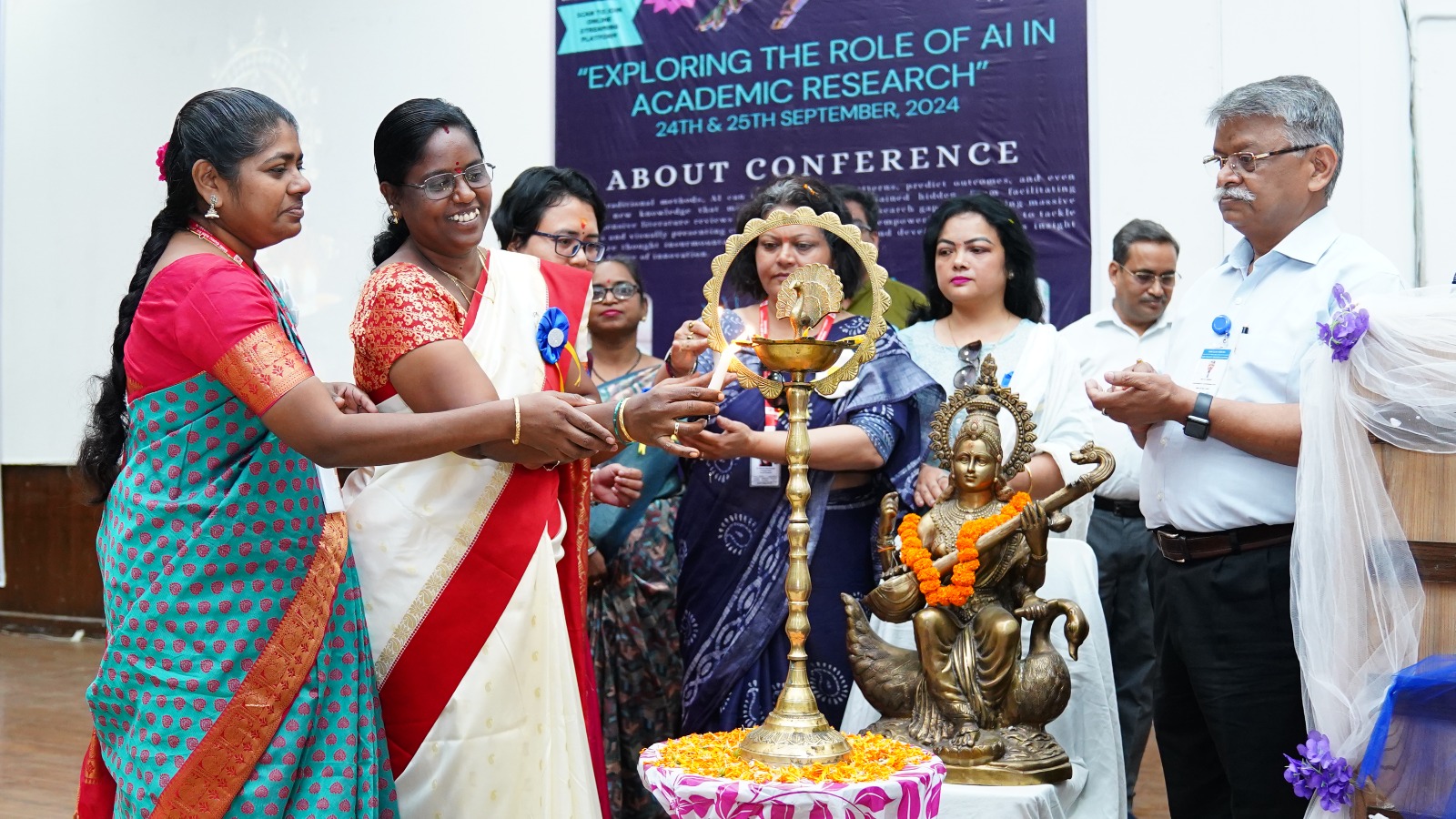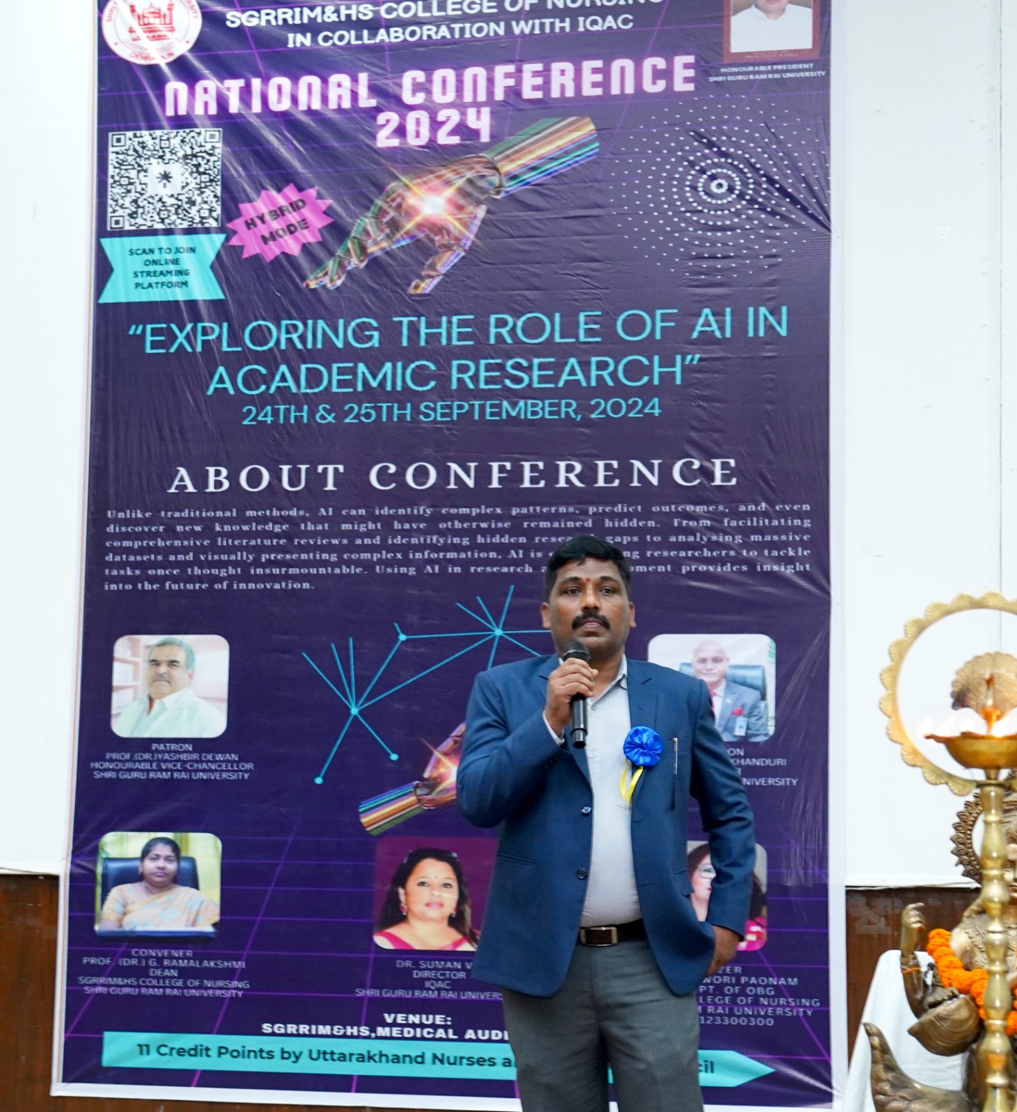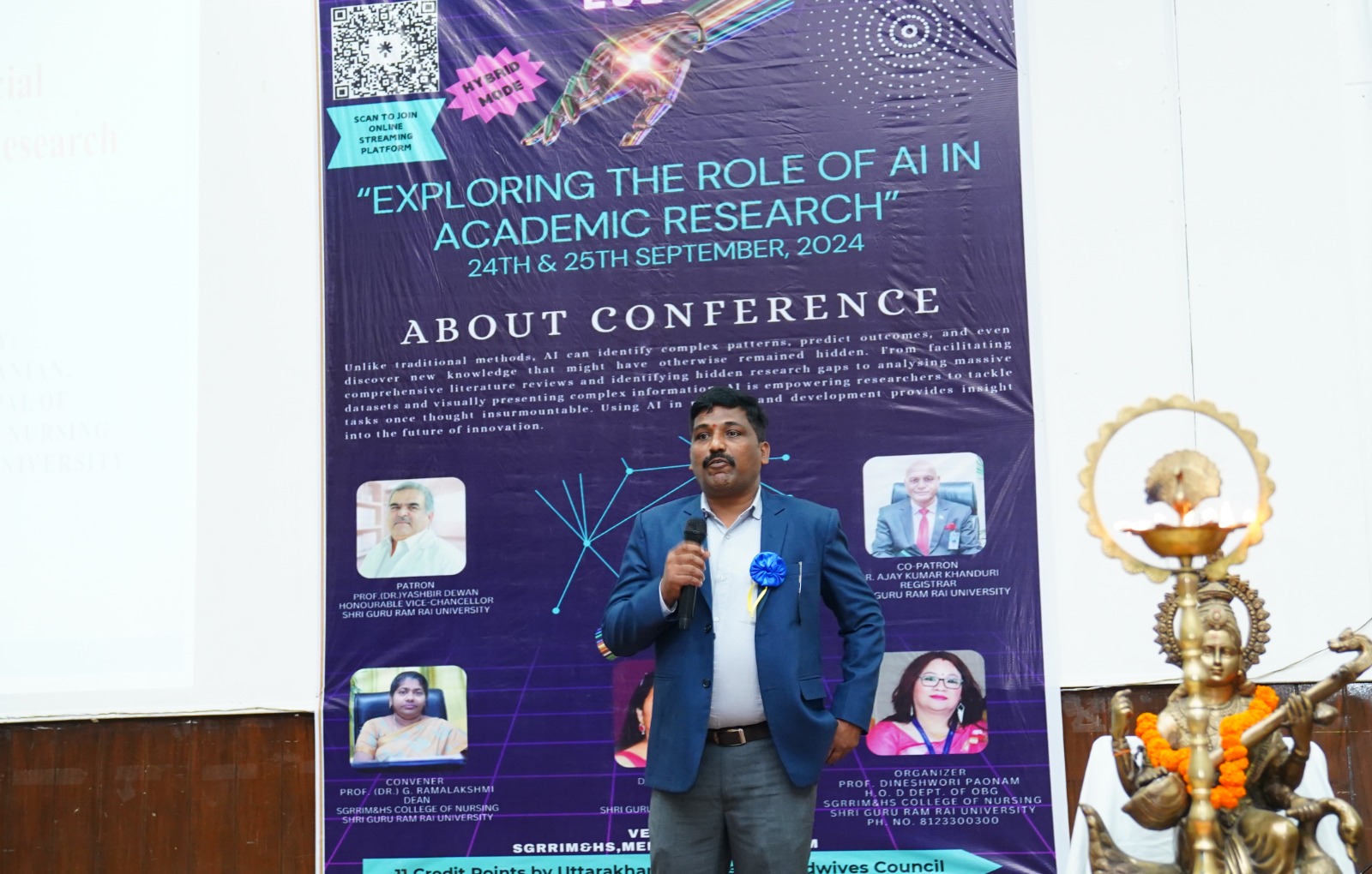 मंगलवार को श्री गुरु राम राय इंस्टीट्यूट ऑफ मेडिकल एण्ड हैल्थ साइंसेज़ के सभागार में सम्मेलन के पहले दिन का शुभारंभ मुख्य अतिथि डाॅ पंकज मिश्रा, विशिष्ट अतिथि डाॅ आर.पी.सिंह, नर्सिंग काॅलेज की डीन डाॅ जी.रामालक्ष्मी ने संयुक्त रूप से दीप प्रज्जवलित कर किया। नर्सिंग छात्र-छात्राओं ने सरस्वती वंदना के साथ कार्यक्रम का आगाज किया। डाॅ जी.रामालक्ष्मी ने स्वागत भाषण पढ़ा। उन्होंने कृत्रिम बुद्धि का शैक्षणिक शोध में योगदान विषय को रेखांकित करते हुए महत्वपूर्णं जानकारियां सांझा की। नूतन काॅलेज ऑफ नर्सिंग, विषनगर गुजरात के प्राचार्य एप्लीकेशन ऑफ आर्टिफिशियल इंटेलीजेंस इन एकेडमिक रिसर्च विषय पर जानकारी दी। उन्होंने कहा कि जाॅन मैकर्थी ने पहली बार 1956 में आर्टिफिशियल इंटेलीजेंस का उपयोग किया था। आर्टिफिशियल इंटेलीजेंस आज के समय की मांग है। छात्र-छात्राओं को आर्टिफिशियल इंटेलीजेंस के लिए मानसिक रूप से सुदृढ बनाए जाने की आवश्यता है।