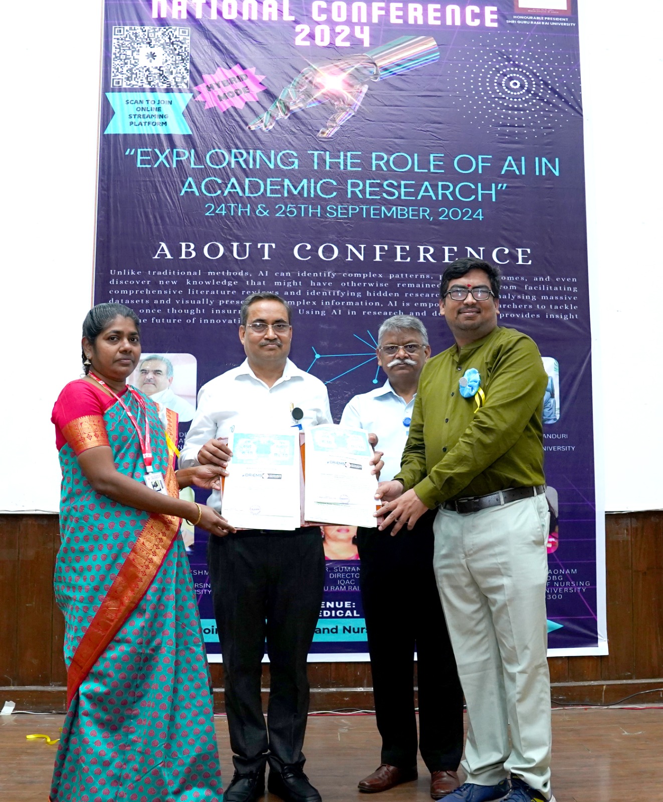 देहरादून। श्री गुरु राम राय विश्वविद्यालय (एसजीआरआरयू) के काॅलेज ऑफ नर्सिंग की ओर से दो दिवसीय सम्मेलन का आयोजन किया गया। कृत्रिम बुद्धि का शैक्षणिक शोध में योगदान विषय पर आयोजित सम्मेलन में विषय विशेषज्ञों ने महत्वपूर्ण जानकारियां सांझा की। सम्मेलन का उद्देश्य आर्टिफिशियल इंटैलीजेंस का उपयोग का शैक्षणिक शोध में योगदान की उपयोगिता को प्रकाशित एवम अन्वेषित करना रहा। एसजीआरआरयू काॅलेज आफ नर्सिंग एवं ड्रीम्स यूनिवर्सिटी स्कूल ऑफ नर्सिंग, कटक, उड़ीसा के बीच एमओयू साइन हुआ। एमओयू के अन्तर्गत छात्र-छात्रओं को एक दूसरे के संस्थानों में शैक्षणिक शोध, स्टुडेंट एवं फेकल्टी एक्सचेंज प्रोग्राम का लाभ मिलेगा।