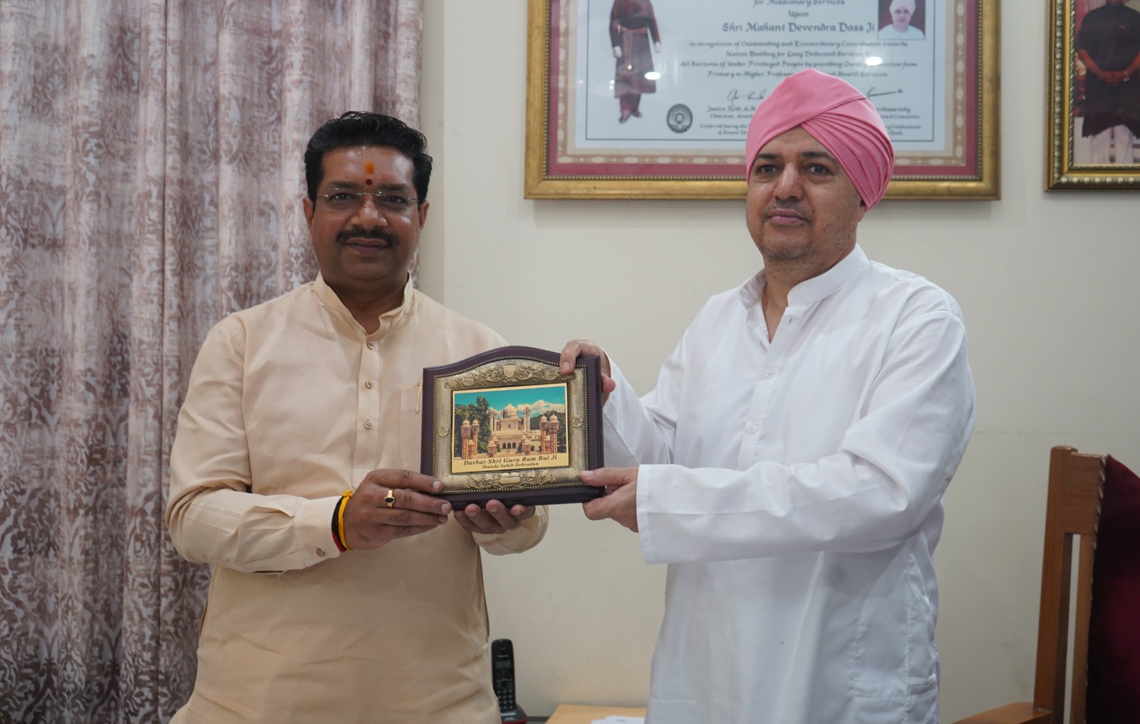 देहरादून। भारतीय जनता पार्टी के प्रदेश संगठन महामंत्री अजय कुमार ने गुरुवार को श्री दरबार साहिब में माथा टेका। उन्होंने श्री दरबार साहिब के श्रीमहंत देवेन्द्र दास जी महाराज से आशीर्वाद प्राप्त किया। दोनों के बीच प्रदेश के समसामयिक विषयों पर विस्तारपूर्वक चर्चा हुई। काबिलेगौर है कि अजय कुमार के पास पश्चिमी उत्तर प्रदेश के महामंत्री संगठन का भी दायित्व रहा है।