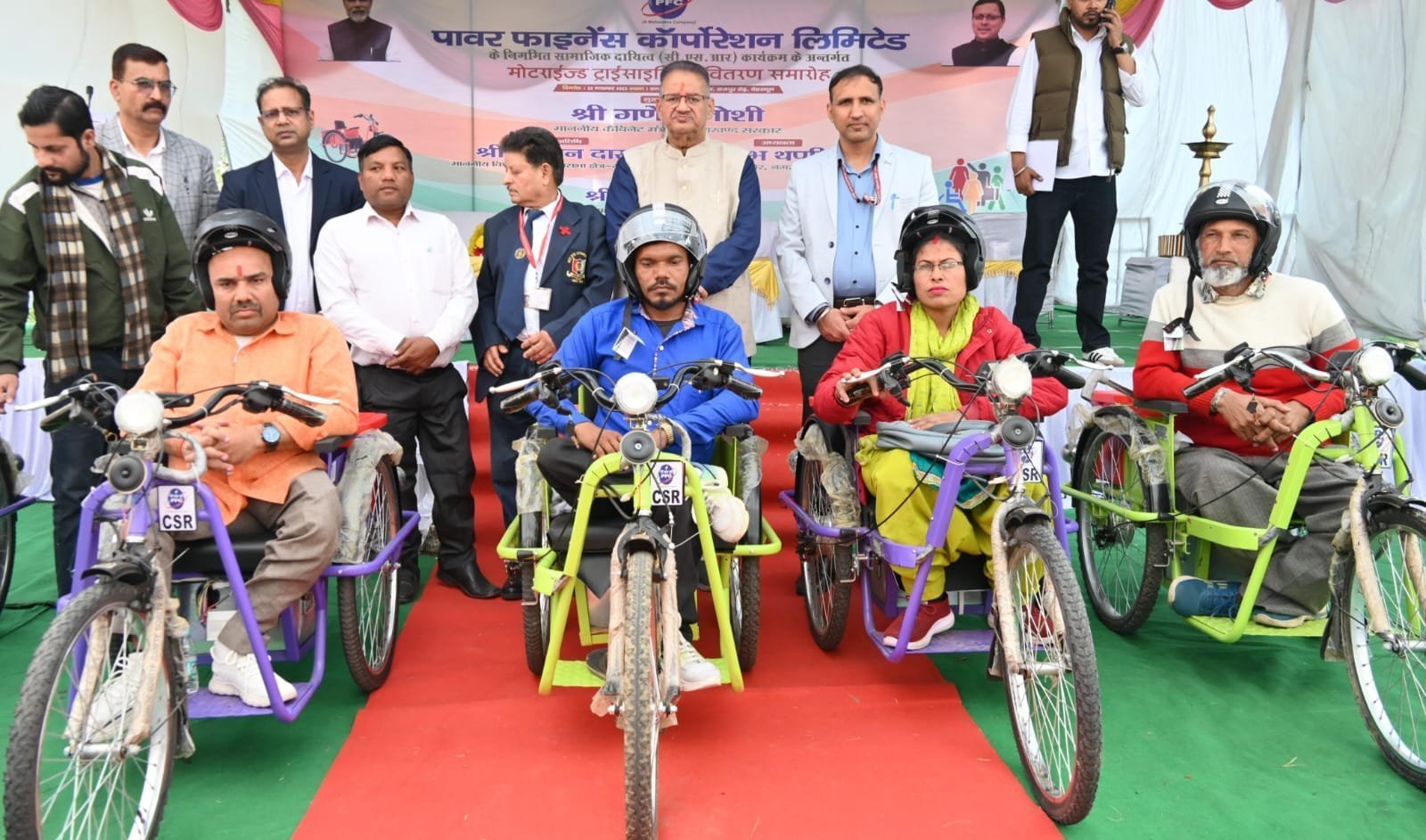 देहरादून : कैबिनेट मंत्री गणेश जोशी ने देहरादून के राष्ट्रीय दृष्टि दिव्यांगजन सशक्तिकरण संस्थान परिसर में एलिम्को के माध्यम से आयोजित दिव्यांगजनों को मोटराइज्ड ट्राईसाइकिल (इलेक्ट्रिक) वितरण कार्यक्रम में मुख्य अतिथि के रूप में प्रतिभाग किया। कार्यक्रम में पावर फाइनेंस कॉर्पोरेशन लिमिटेड (पीएफसी) की सीएसआर निधि से 169 दिव्यांगजनों को निशुल्क इलेक्ट्रिकमोटराइज्ड ट्राईसाइकिलें वितरित की गईं कैबिनेट मंत्री गणेश जोशी ने इस सराहनीय पहल के लिए पावर फाइनेंस कॉर्पोरेशन लिमिटेड के अधिकारियों को शुभकामनाएं दीं। उन्होंने कहा कि संस्था द्वारा अपने निगमित सामाजिक दायित्व के अंतर्गत लगभग 1 करोड़ रुपए की धनराशि इस उद्देश्य के लिए उपलब्ध कराई गई है।