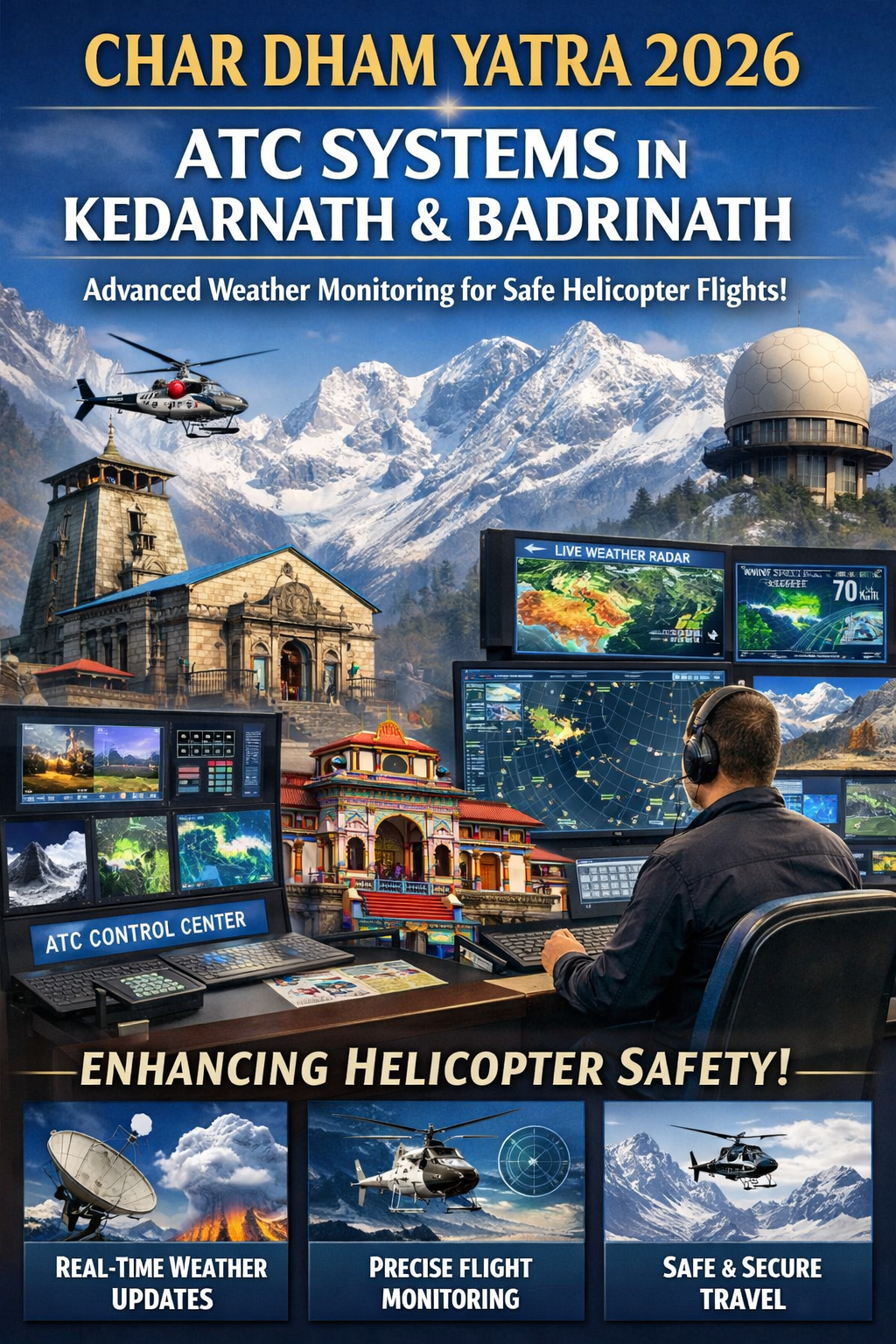 देहरादून: आगामी चारधाम यात्रा 2026 के दौरान हेलीकॉप्टर यात्रा को और अधिक सुरक्षित बनाने के लिए उत्तराखंड सरकार ने महत्वपूर्ण कदम उठाए हैं। पहली बार केदारनाथ और बदरीनाथ धाम में हवाई यातायात नियंत्रण (एटीसी) प्रणाली स्थापित की जा रही है, जिससे उच्च हिमालयी क्षेत्रों में पल-पल मौसम की जानकारी उपलब्ध होगी और उड़ानों पर सतत निगरानी रखी जा सकेगी।