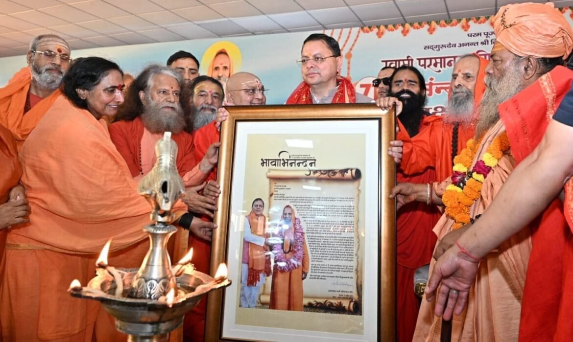 हरिद्वार। मुख्यमंत्री पुष्कर सिंह धामी ने अक्षय तृतीया के पावन अवसर पर आयोजित अखण्ड परमधाम गंगा घाट के लोकार्पण समारोह एवं स्वामी परमानन्द गिरि जी महाराज की 71वीं संन्यास जयंती के उपलक्ष्य में आयोजित कार्यक्रम में प्रतिभाग किया। मुख्यमंत्री ने इस अवसर पर देशभर से पधारे संत-महात्माओं एवं श्रद्धालुओं का स्वागत एवं अभिनंदन किया। मुख्यमंत्री ने कहा कि यह आयोजन केवल एक घाट के लोकार्पण का अवसर नहीं, बल्कि सनातन संस्कृति, आस्था और आध्यात्मिक चेतना के निरंतर प्रवाह का प्रतीक है। उन्होंने स्वामी परमानन्द गिरि जी महाराज के जीवन को तप, त्याग और साधना का अनुपम उदाहरण बताते हुए कहा कि उनके विचारों एवं शिक्षाओं ने समाज को सेवा, करुणा और मानव कल्याण के मार्ग पर अग्रसर किया है।
