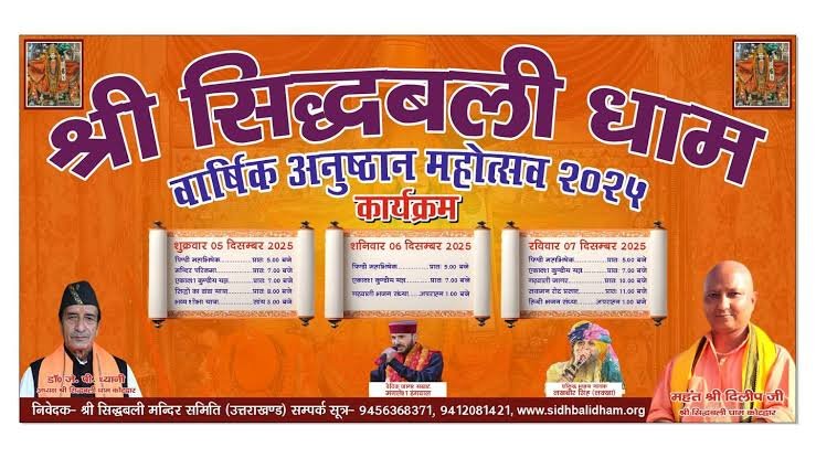 कोटद्वार :  श्री सिद्धबली मंदिर समिति द्वारा भव्य वार्षिक अनुष्ठान महोत्सव की तैयारियों को लेकर बैठक की गई। जिसमें मंदिर के महंत दिलीप रावत के कुशल मार्ग दर्शन और मंदिर समिति के अध्यक्ष डॉ जे.पी. ध्यानी अध्यक्षता में दिनांक 05, 06 व 07 दिसम्बर 2025 को होने वाले श्री सिद्धबली बाबा वार्षिक अनुष्ठान महोत्सव को सफल और भव्य बनाने के लिए कोटद्वार नगर की विभिन्न सामाजिक और धार्मिक समितियों के पदाधिकारियों के साथ बैठक सम्पन्न हुई।