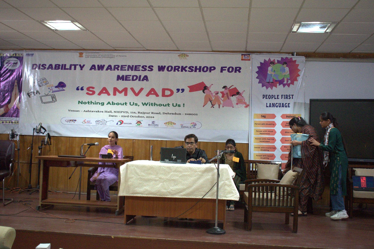 राष्ट्रीय दृष्टि दिव्यांगजन सशक्तिकरण संस्थान के कार्यकारी निदेशक सुरेन्द्र ढालवाल ने, “SAMVAD कार्यक्रम का उद्देश्य बताते हुए कहा की समाज में मीडिया की भूमिका जन जागरूकता के साथ लोगों के विचारों को आकार देने में भी अहम है ऐसे मे मीडिया का दिव्यांगजनों और उनके अधिकारो के प्रति जागरूक व संवेदनशील होना बहुत जरूरी है”। कार्यशाला में विभिन्न विषयों पर चर्चा हुई, जिनमें आर.पी.डब्ल्यू.डी एक्ट के बारे में संस्थान के असिस्टेंट प्रोफेसर पंकज कुमार ने विस्तार से बताया साथ ही संस्थान के रेडियो जॉकी कोर्स के छात्रों ने इस पर लघु नाटिका प्रस्तुत की। दिव्यांगजनों के शिक्षा,रोजगार व पुनर्वास के लिए दिव्यांगजन सशक्तिकरण विभाग, भारत सरकार द्वारा संचालित विभिन्न योजनाओं पर एक फिल्म भी दिखायी गयी जिसे संस्थान के रेडियो जॉकी कोर्स के छात्रों द्वारा लिखा व अभिनय किया गया था।