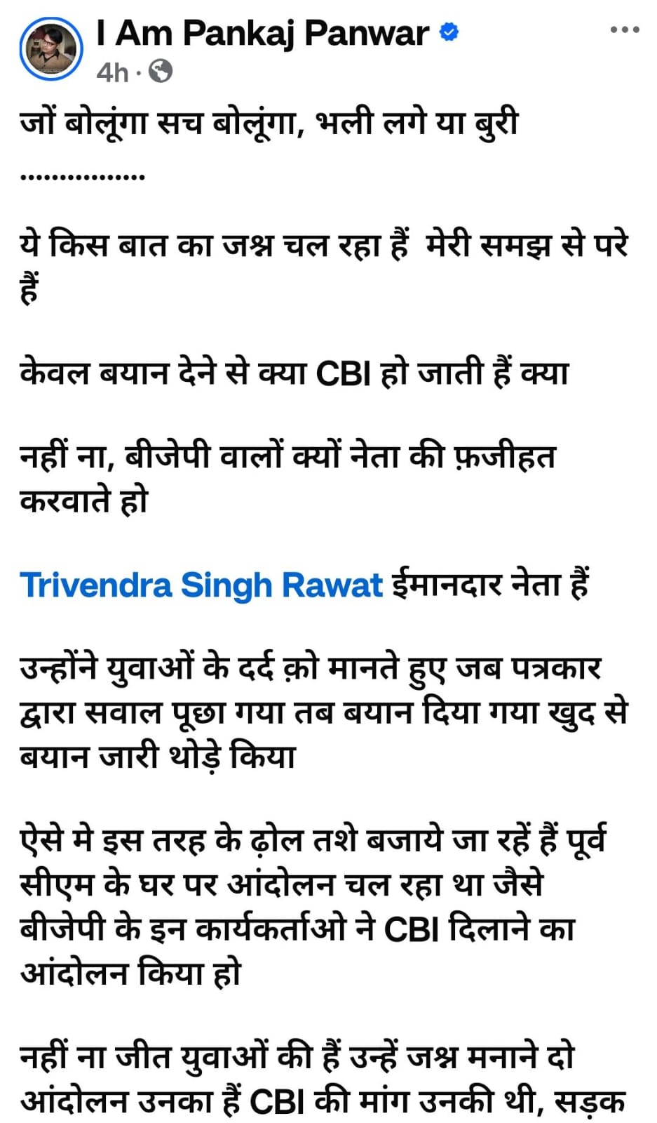 सच यही है कि जीत बेरोजगार युवाओं की है। उनका संघर्ष ही असली वजह है कि सरकार को सीबीआई जांच की संस्तुति करनी पड़ी। मुख्यमंत्री पुष्कर सिंह धामी ने पहल की, लेकिन श्रेय किसी और के दरवाज़े पर पटाखे बजाकर ,और मिठाई खिलाकर क्यों बाँटा जा रहा है.?
