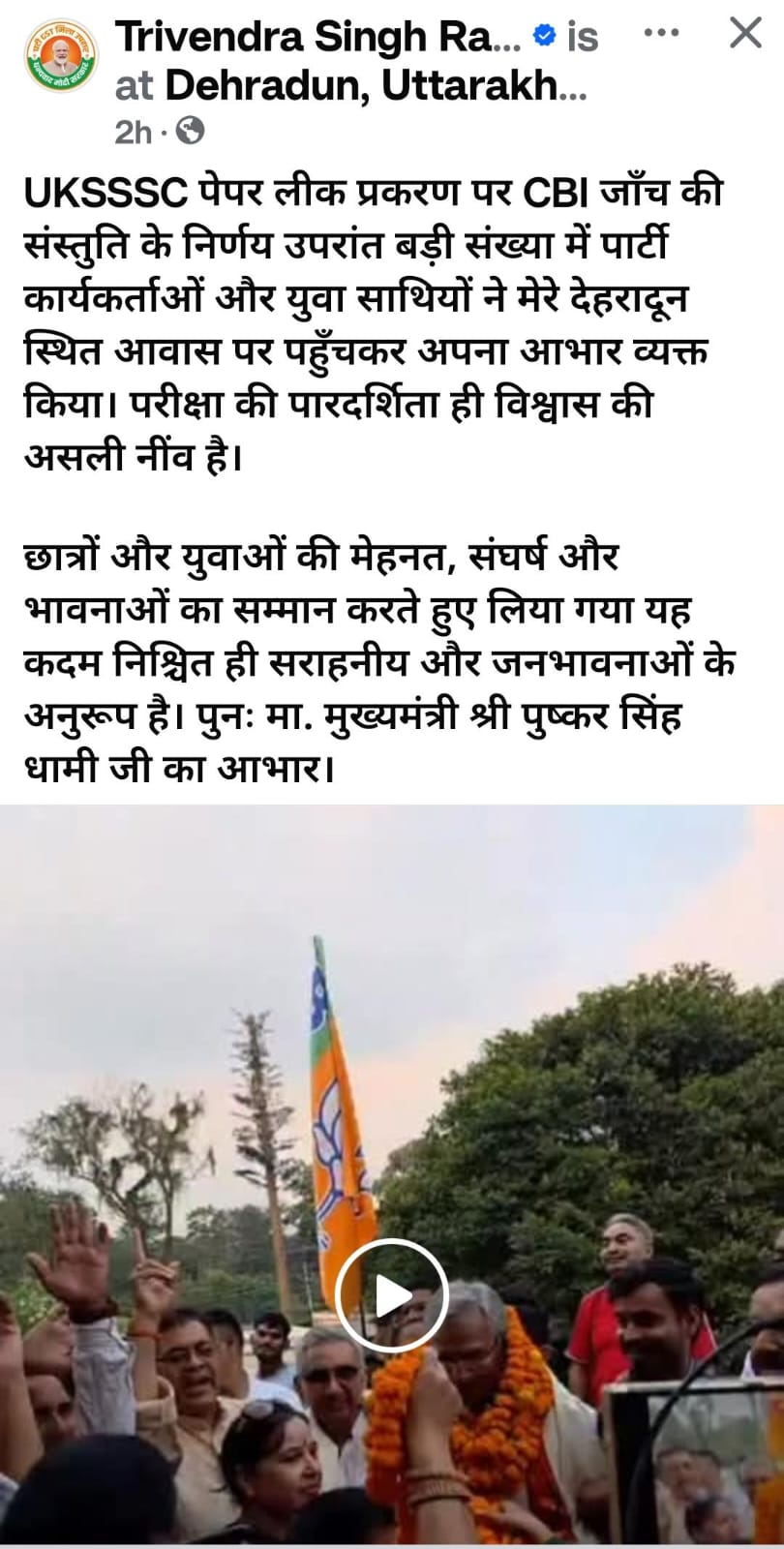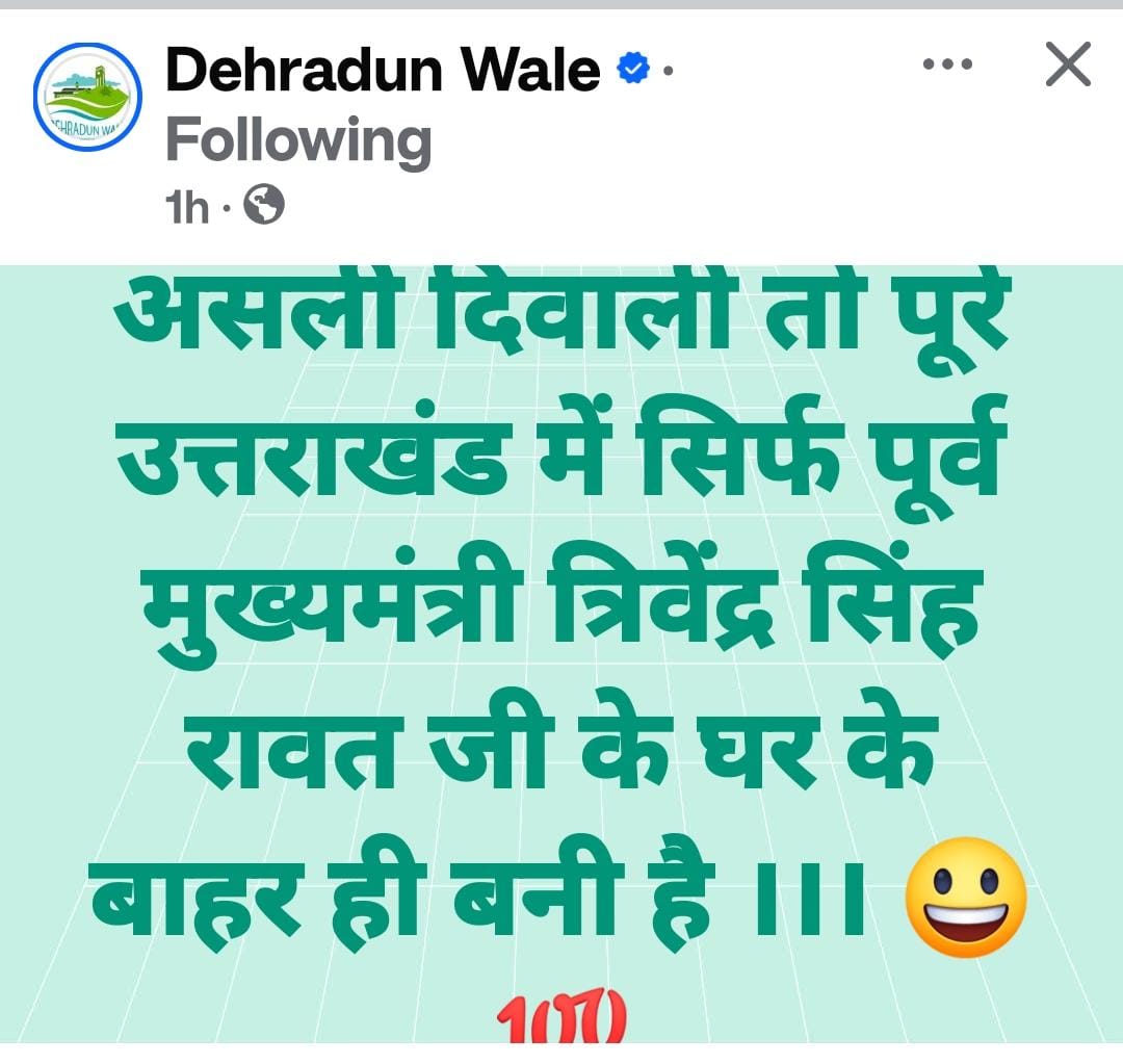 मगर सोशल में वीडियो आये कि पूर्व CM त्रिवेंद्र सिंह रावत के घर कार्यकर्ता जुटे, आतिशबाजी हुई, मिठाइयाँ बंटी पूर्व CM को भी खिलाई गई। जिसके बाद सोशल मीडिया पर लोग फट पड़े—“बेगानी शादी में अब्दुल्ला दीवाना।” और न जाने लोग सवाल उठाते हुए क्या-क्या लिखने लगे।