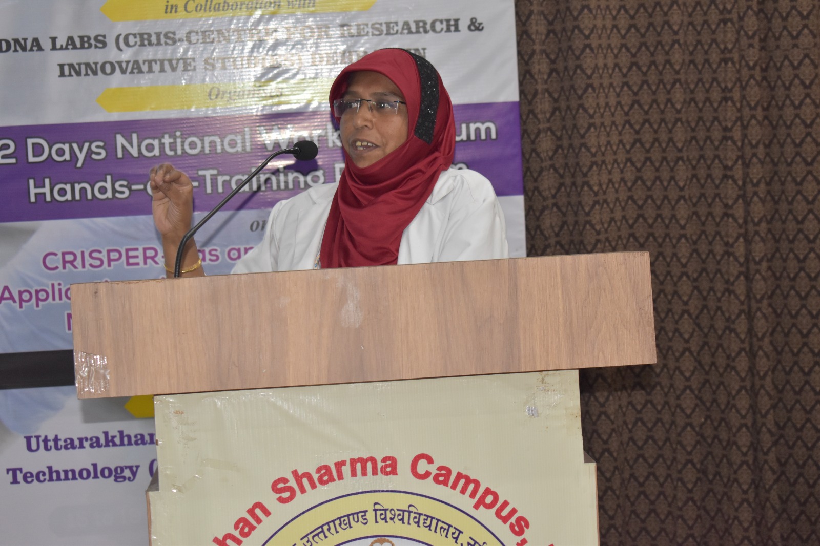 इस अवसर पर कार्यवाहक निदेशक व विज्ञान संकायाध्यक्ष प्रो. गुलशन कुमार ढींगरा ने सभी अतिथियों का स्वागत किया तथा इस कार्यशाला के उद्देश्य के बारे में जानकारी देते हुए कहा कि यह कार्यशाला एम एल टी, माइक्रोबायोलॉजी विभाग, अनुसंधान एवं विकास प्रकोष्ठ तथा आइ.क्यू.ए.सी सेल के बैनर तले आयोजित किया जा रहा है तथा इसमें CRISPR cas तकनीकि से अनुसंधान में जैव सूचना विज्ञान का अनुप्रयोग व सूक्ष्मजीवों में आनुवंशिक दोषों का निवारण के बारे में बताया जायेगा, उन्होंने बताया कि डीएनए लैब्स, देहरादून के सहयोग से हमारे परिसर में यह पांचवी कार्यशाला का आयोजन किया जा रहा है जिसमें देश के विभिन्न स्थानों से प्रतिभागी प्रतिभाग कर रहे है I