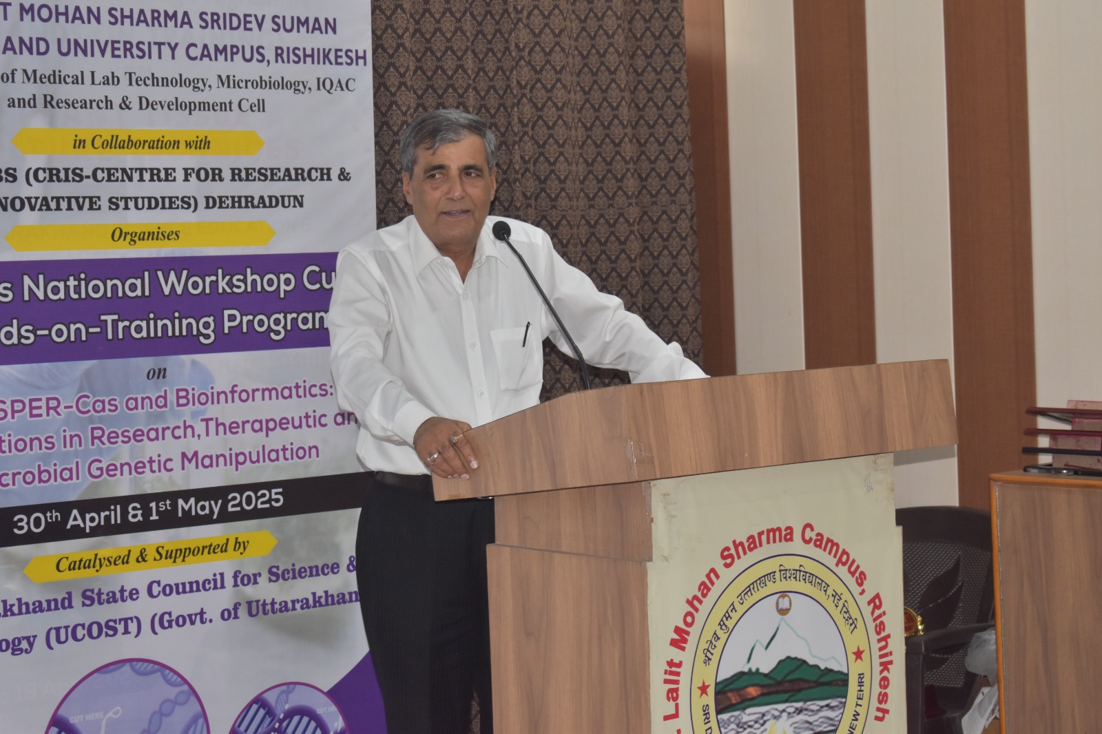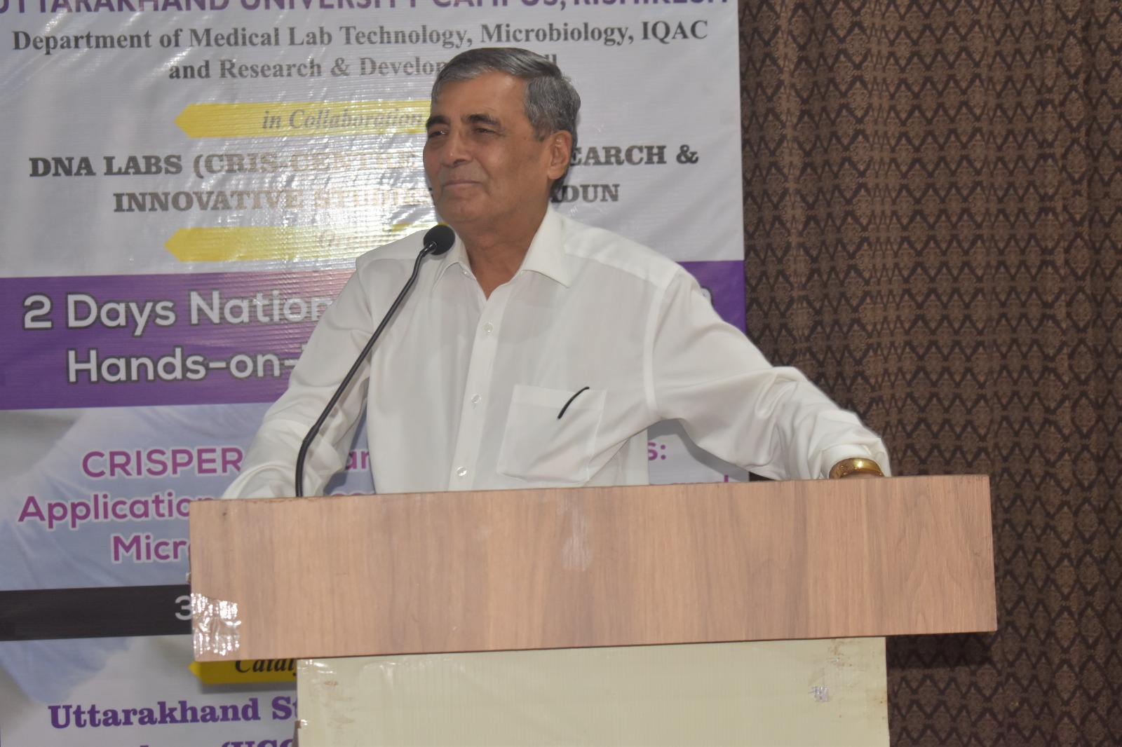 विशिष्ट अतिथि एम्स ऋषिकेश की बायोकेमेस्ट्री विभाग की वरिष्ठ प्रोफेसर डॉ मनीषा नैथानी ने कहा कि इस कार्यशाला का विषय छात्रों के लिए बहुत महत्वपूर्ण है, अनुवांशिकी दोषो में अनको बीमारियां आती है जिनको चिकित्सा पद्धति से दूर किया जा सकता है, इस लिए क्रिस्पर तकनीकी बहुत महत्वपूर्ण है।