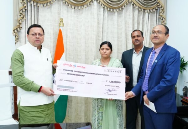 मुख्यमंत्री धामी को उत्तरकाशी आपदा राहत के लिए यूनियन बैंक ऑफ इंडिया ने दी 01 करोड़ रूपये की धनराशि